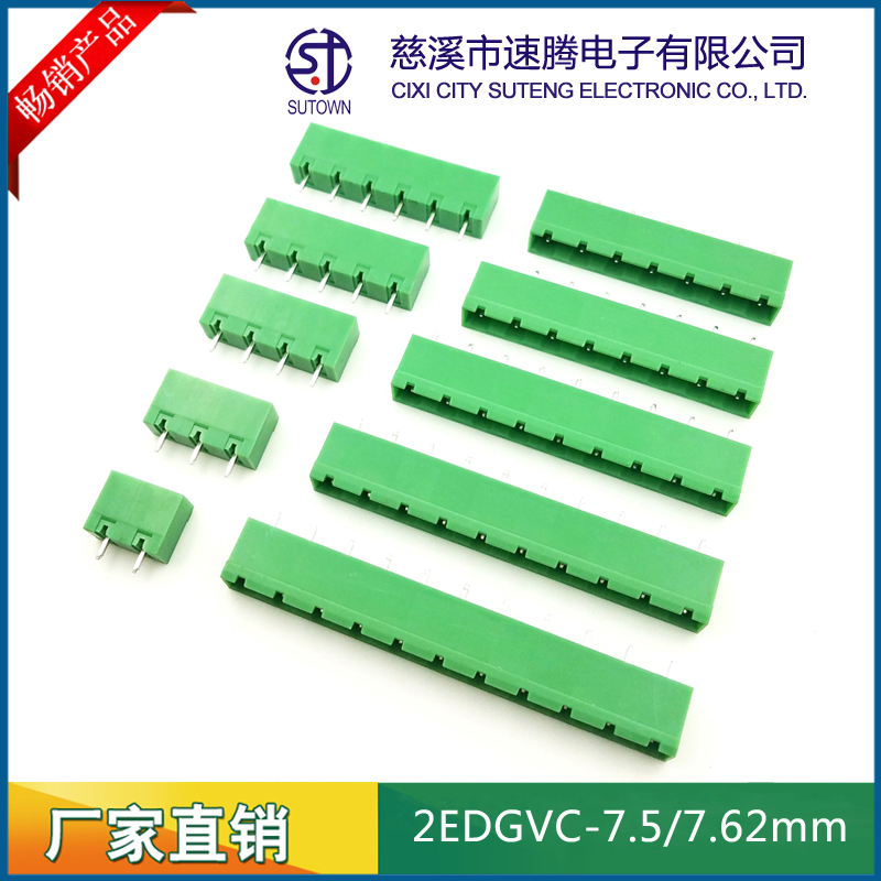 Material and Plating Spacing:7.5/7.62mm Plastic parts;PA66,UL94V-0 Cage:Brass,Tin plating Screw:M3.0,Steel,Zn Plating Terminal:Phosphor bronze,Nickel plating Electrical performance Rated voltage:300V Rated current:15A Ambient temperature:-40℃~+105℃ MAX Soldering:+250℃,5s Withstanding Voltage:AC1500V/1Min Contact resistance:20mΩ Insulation resistance:5000MΩ/1000V Wire diameter:28-12AWG 2.5mm2 Torque:0.4Nm Strip length:7-8mm
