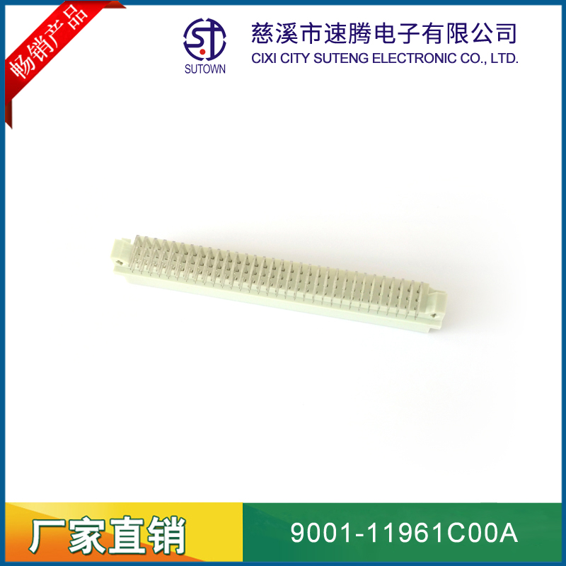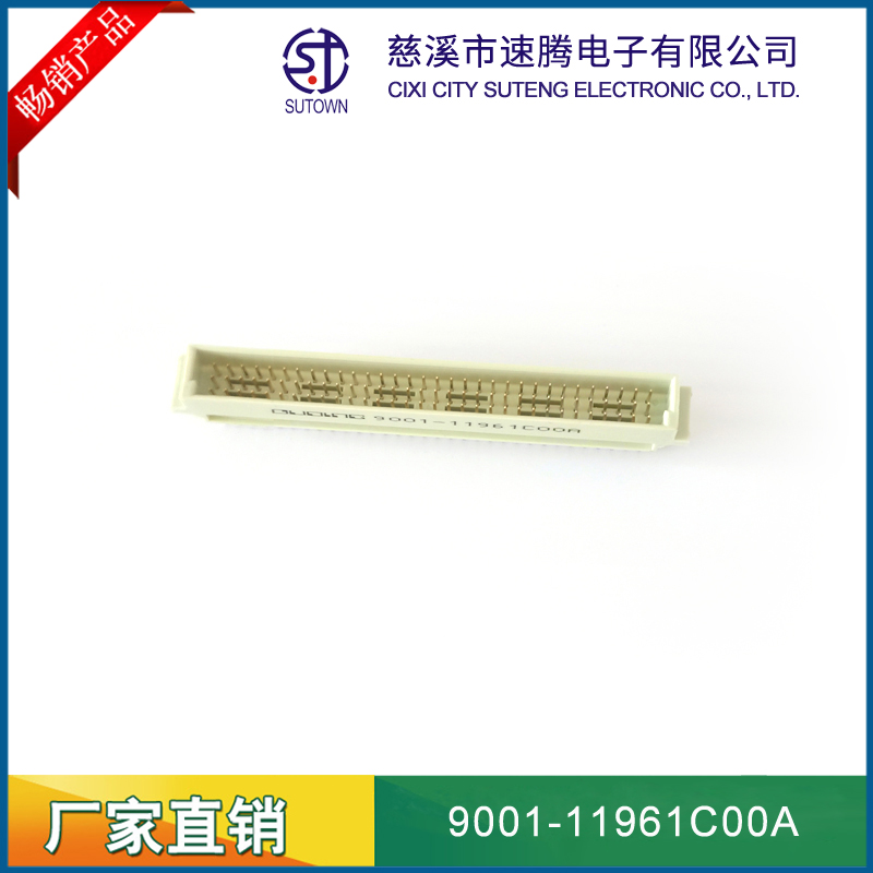 品名:歐式插座連接器型號(hào):9001-11961C00A 規(guī)格:96pin屬性:彎針公座 90° 間距:2.54間距